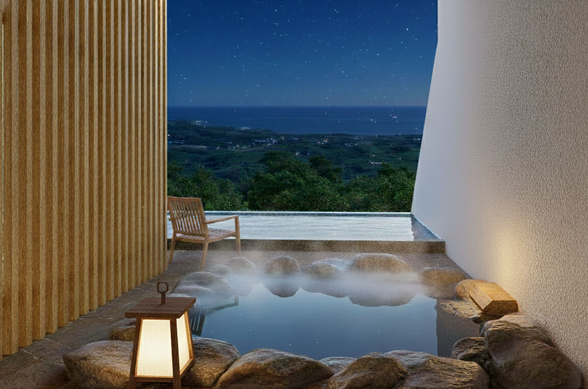 夜は露天風呂に浸かり、見上げると満点の星空。あなただけの贅沢がここに。
